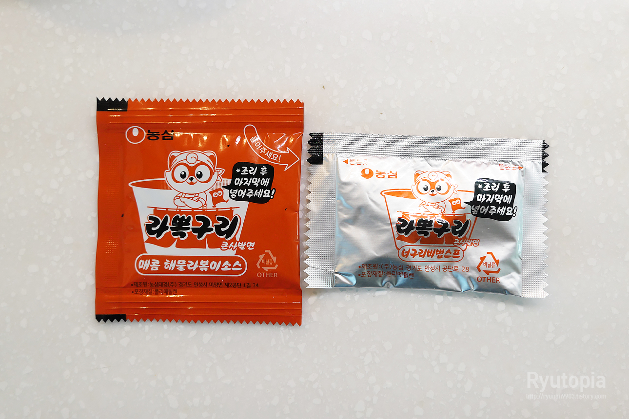 해물맛 라면인 너구리의 정체성은 그대로 유지하면서 이 안에서 매콤달콤 라볶이의 맛을 잘 잡아냈어요.