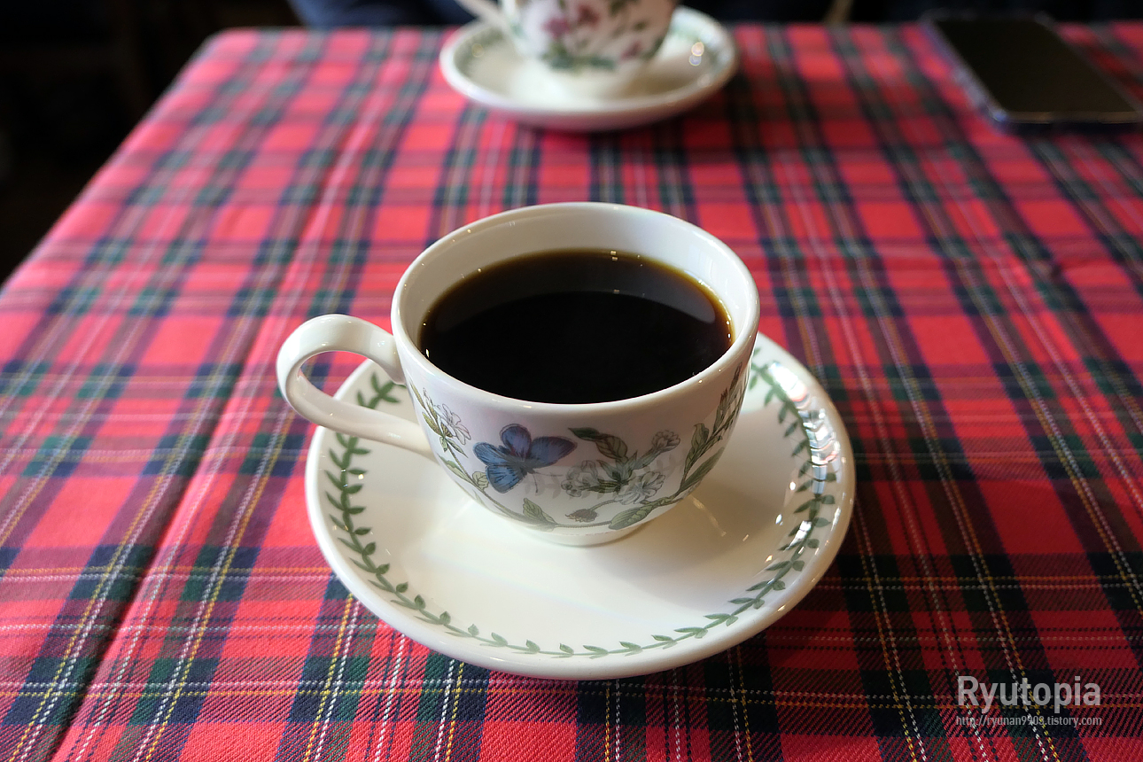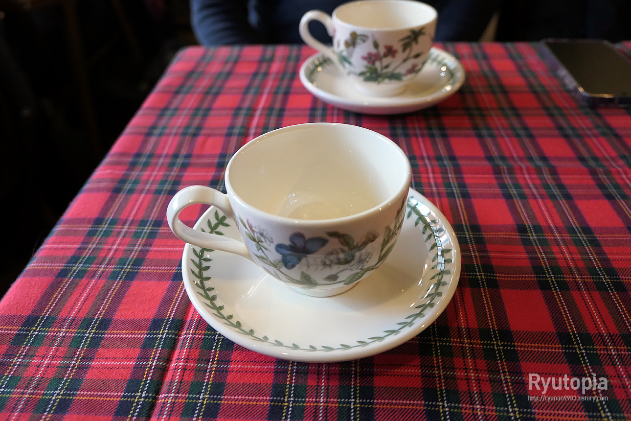 가게의 차분한 분위기만큼 커피잔도 문양은 화려하지만 분위기는 차분하고 클래식합니다.