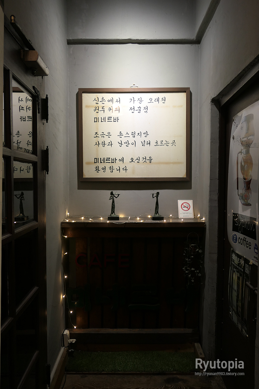 미네르바는 1975년 오픈, 현재 50년 넘은 역사를 갖고 있는 신촌에서 가장 오래된 원두커피 전문점이라고 합니다.