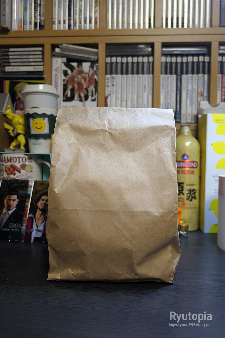 빵 구매하면 이렇게 종이봉투에 담아주는데 손잡이 달린 봉투는 별도 요금을 받습니다. 이 봉투는 요금을 따로 안 받아요.
