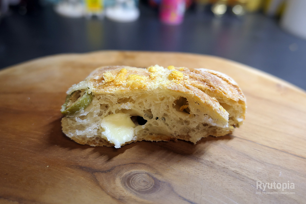 치아바타 안에도 이렇게 치즈가 들어있어 짭짤하면서도 향 좋은 올리브과 치즈의 조합이 굉장히 마음에 들었던 빵.