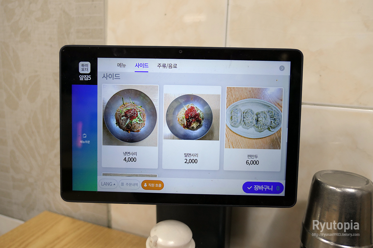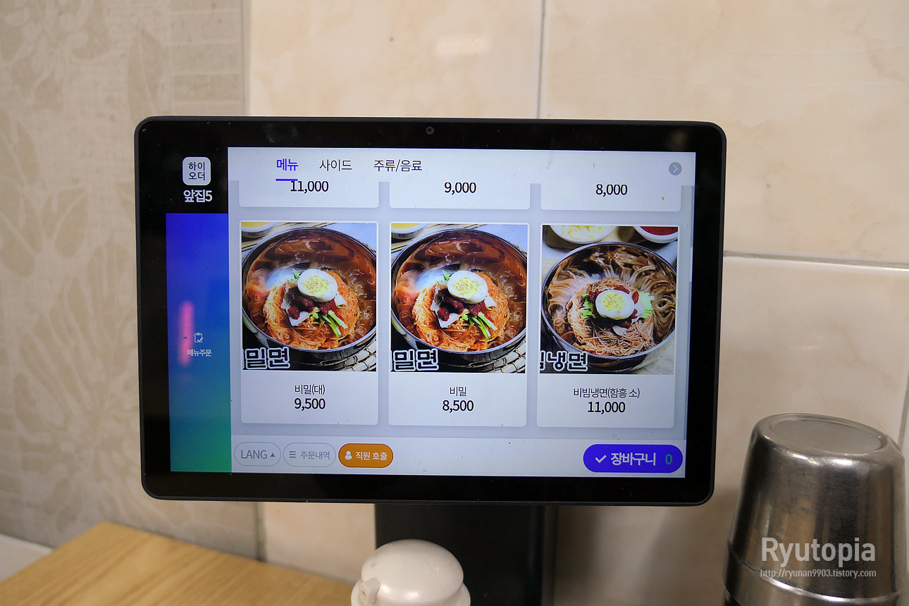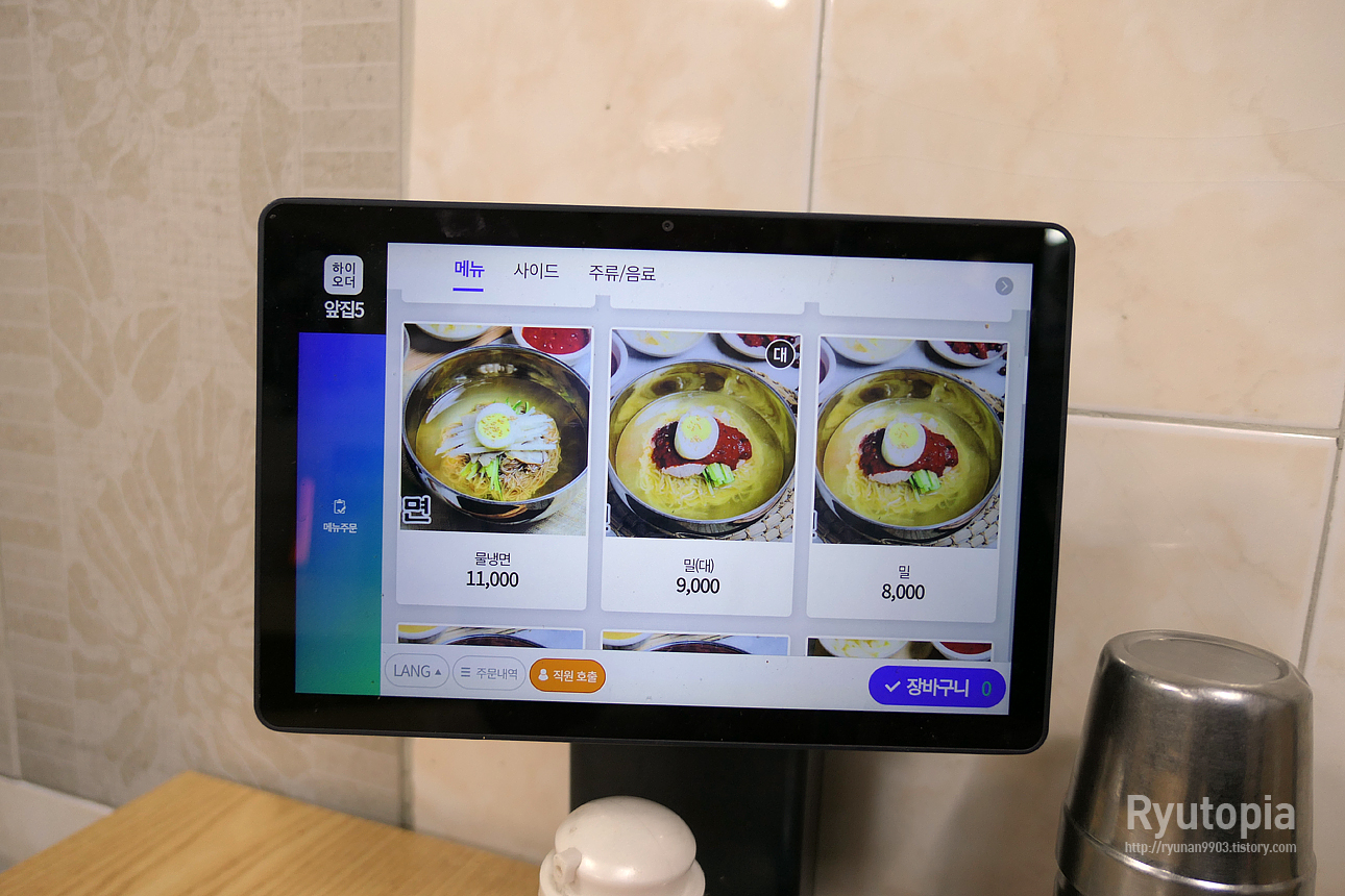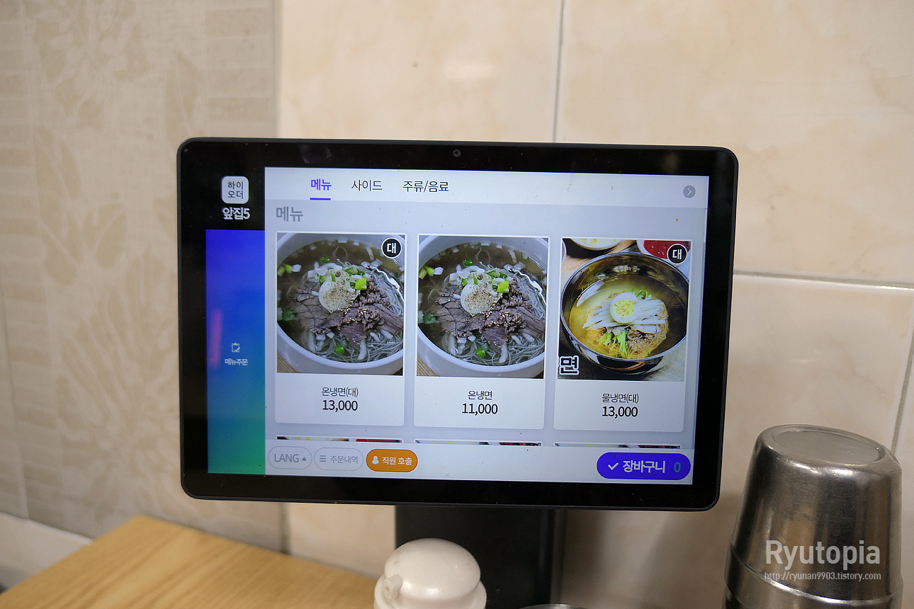 테이블마다 태블릿PC가 설치되어 있어 그걸 통해 주문할 수 있다.