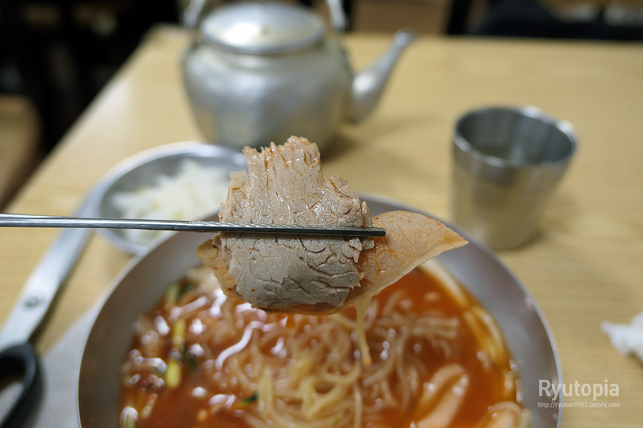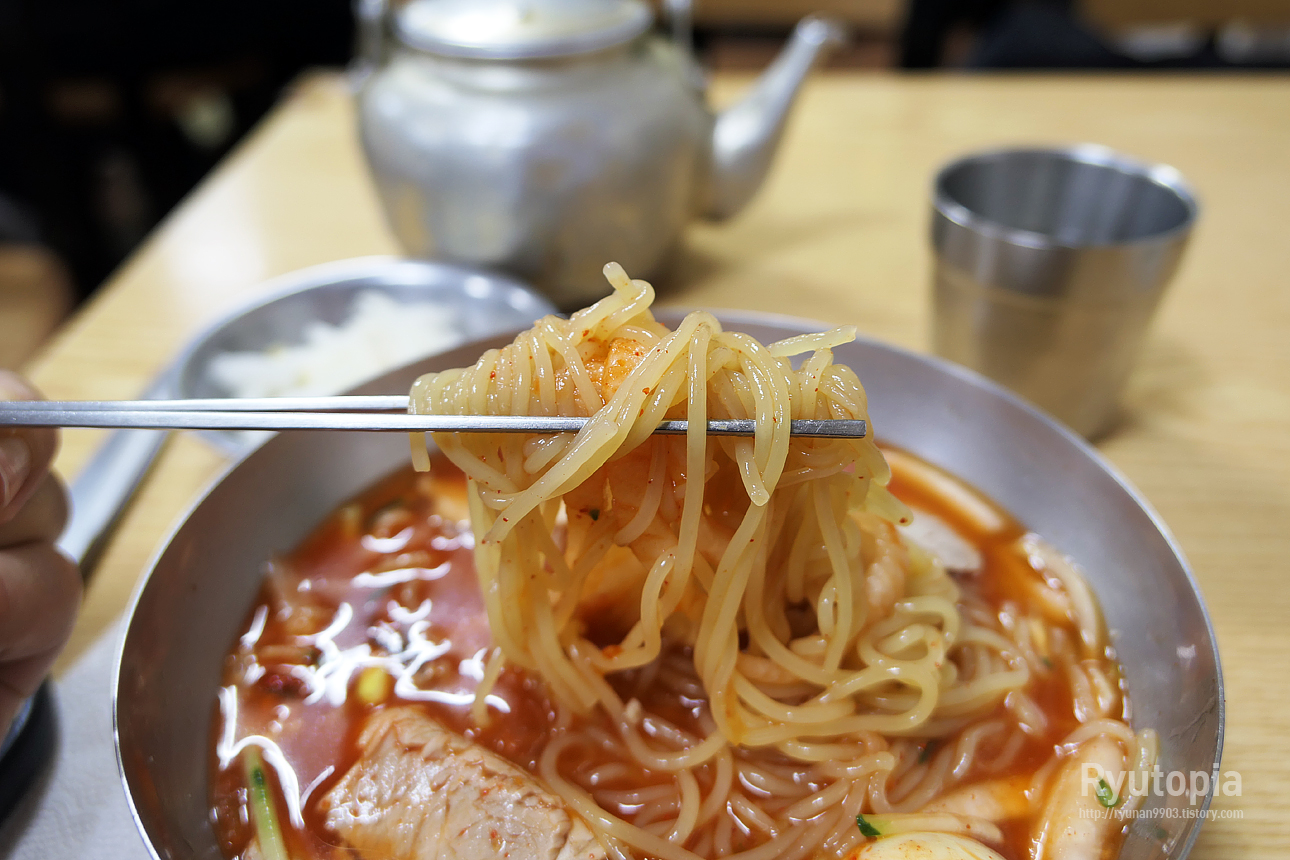 다만 이로 끊어지지 않을만큼 아주 탱탱한 정도까진 아니라 먹는데 불편함은 없지만 여태껏 먹었던 밀면과는 확실히 달랐다.