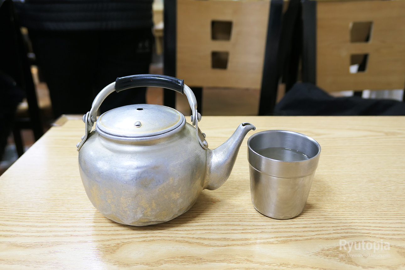 양은주전자에 따끈한 육수를 담아 내어준다.