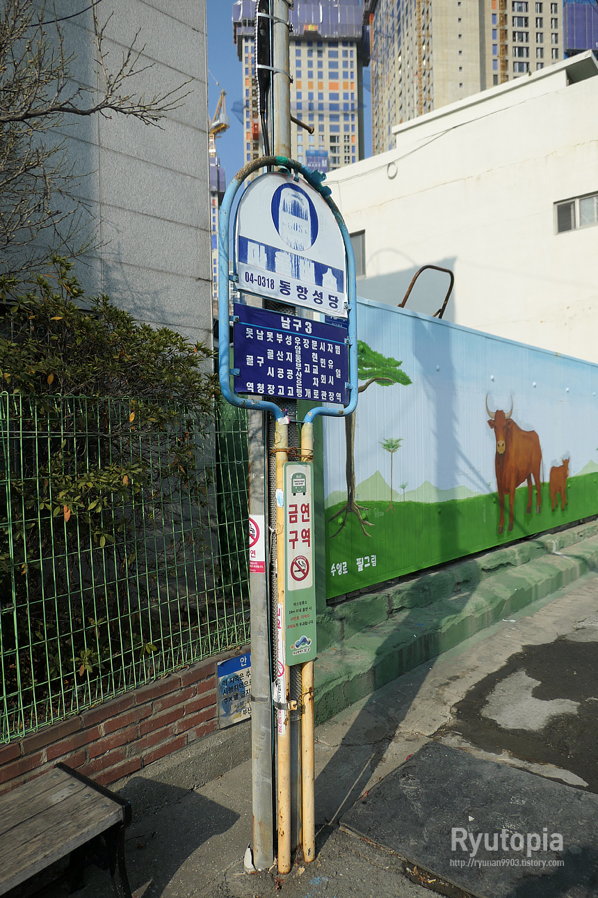 어쨌든 여기서 남구03번 마을버스를 타고 몇 정거장 이동, '동항성당' 이라는 정류장에서 내렸다.