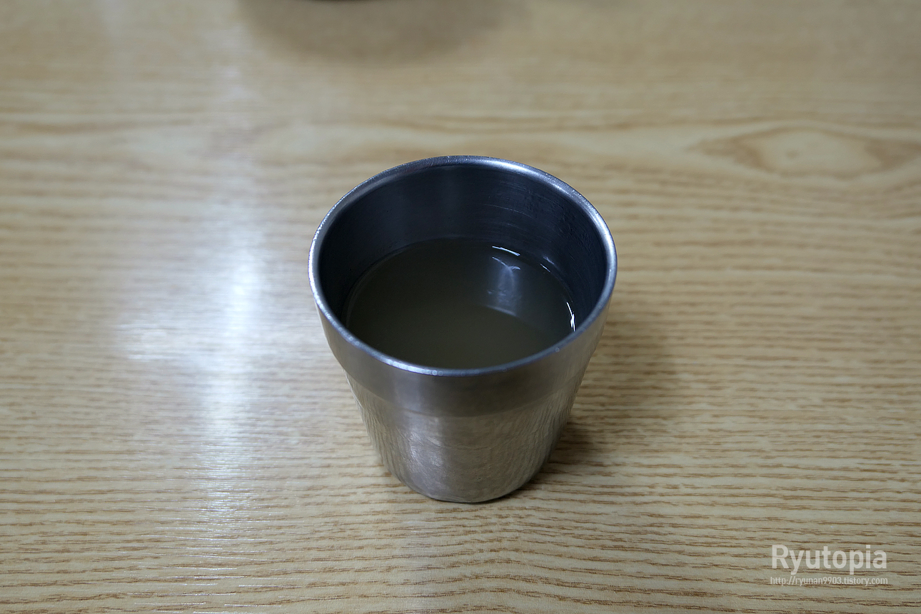 살짝 얼큰한 향 감도는 냉면집 육수와 동일한 맛.