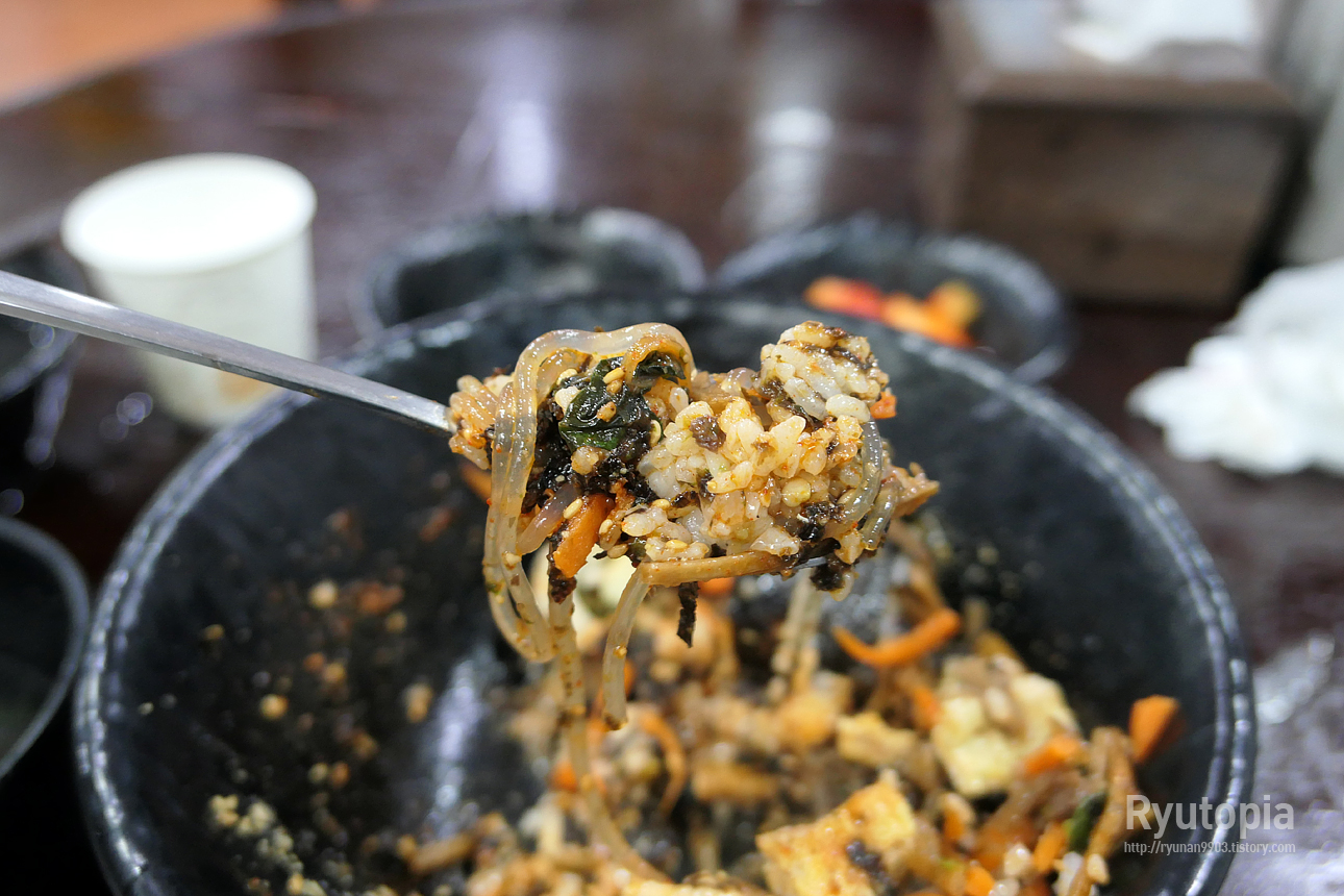 살짝 의외였던 부분이라면 나는 비빔김밥이라 해서 비빔국수처럼 차가운 걸 생각했는데, 찬 음식이 아닌 따뜻한 음식이었던 것.