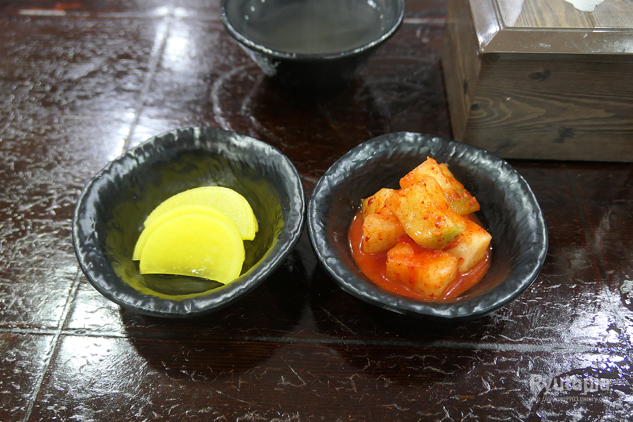 반찬으로는 단무지, 그리고 깍두기가 나오는데, 저 깍두기가 직접 담근건지 엄청 맛있었음.
