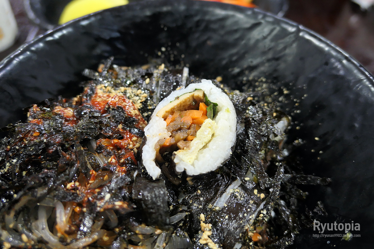 김밥 안에 들어간 우엉, 당근 등의 야채 때문에 진짜 비빔밥처럼 되어버린 게 킬포인트랄까....