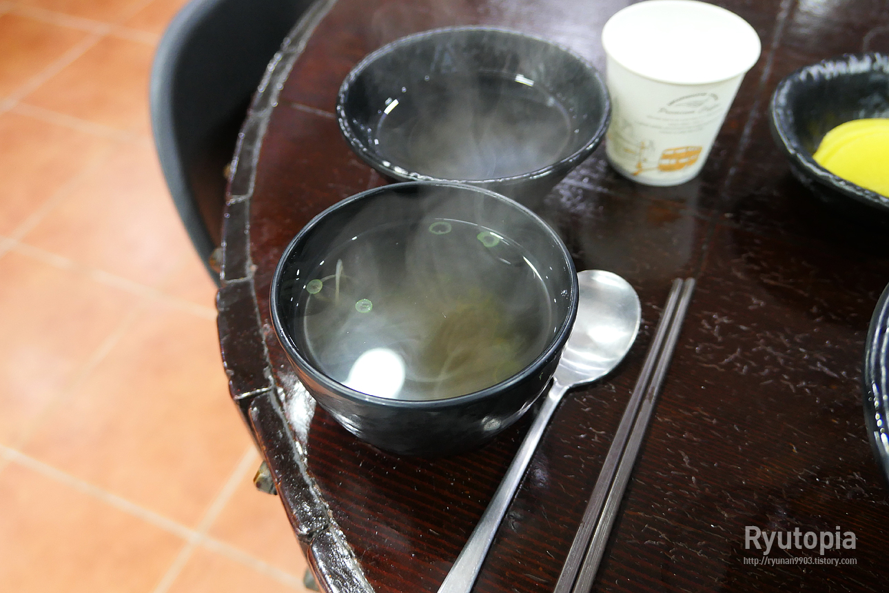 그와 별개로 직원이 파 담은 국물을 따로 가져다주셨음...;; 사람들이 가져다먹길래 셀프인 줄 알았더니 처음은 가져다주는 거였다.
