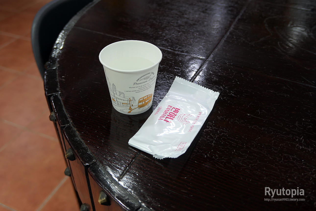 매장 안 온수통에 국물이 비치되어 있고 옆에 그릇도 놓여있길래 한 그릇 셀프로 직접 가져왔는데,