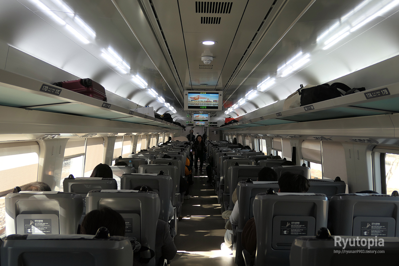 좌석 시트가 다른 열차게 비해 좀 딱딱하고 통통 튀는 느낌이라 별로 편하진 않지만, 뭐 1시간 정도 타는 건 문제될 게 없지...