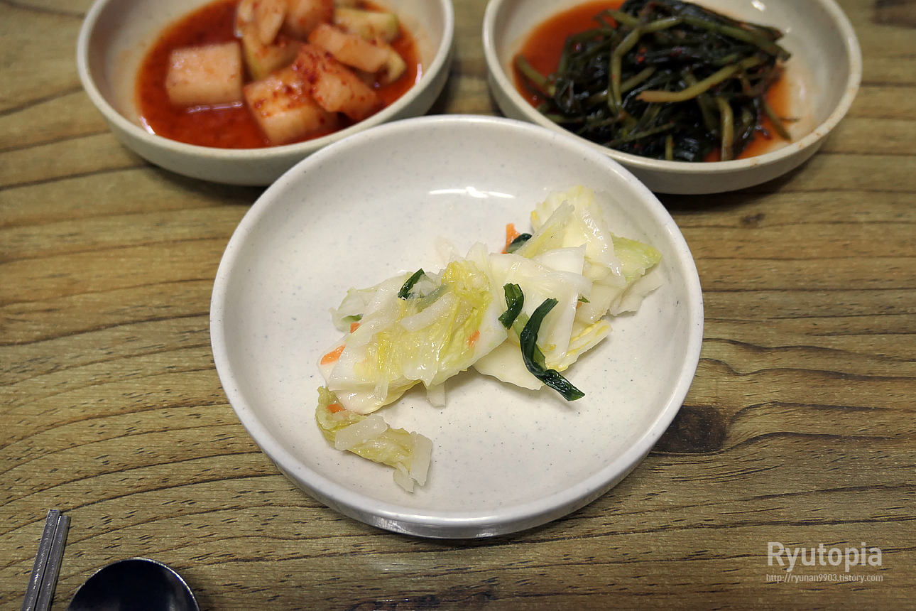기본찬으로는 깍두기, 그리고 부추무침이 나오는데, 신선하게 무친 게 아닌 푹 익은 부추무침으로 나옴.