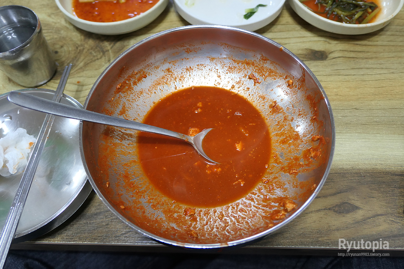 여기 국물과 양념엔 어떠한 단맛도 없기 때문이다. 간도 보기보다 약한 편이고(물론 매운맛 때문에 맛은 자극적이지만)