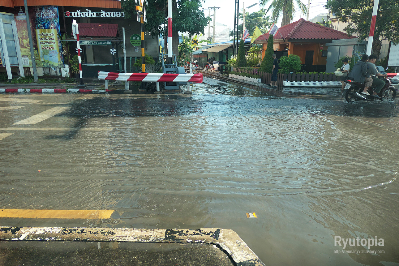 가이드에게 이야기 듣기로 수상시장이 있는 담넌싸두억 & 매끌렁 기찻길 일대는 저지대라 수시로 침수가 일어난다고 한다.