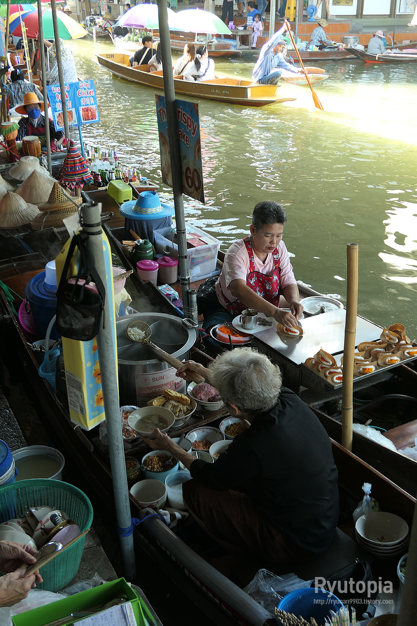 그리고 이 앞의 수로엔 수많은 장사하는 배들이 오가면서 배 안에 과일과 각종 먹을거리를 싣고 열심히 장사 중.