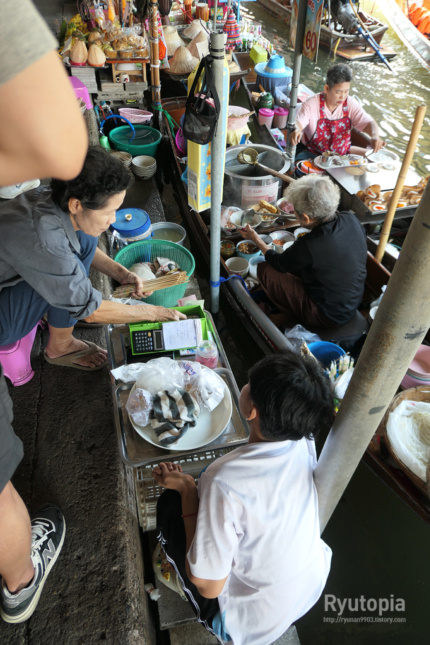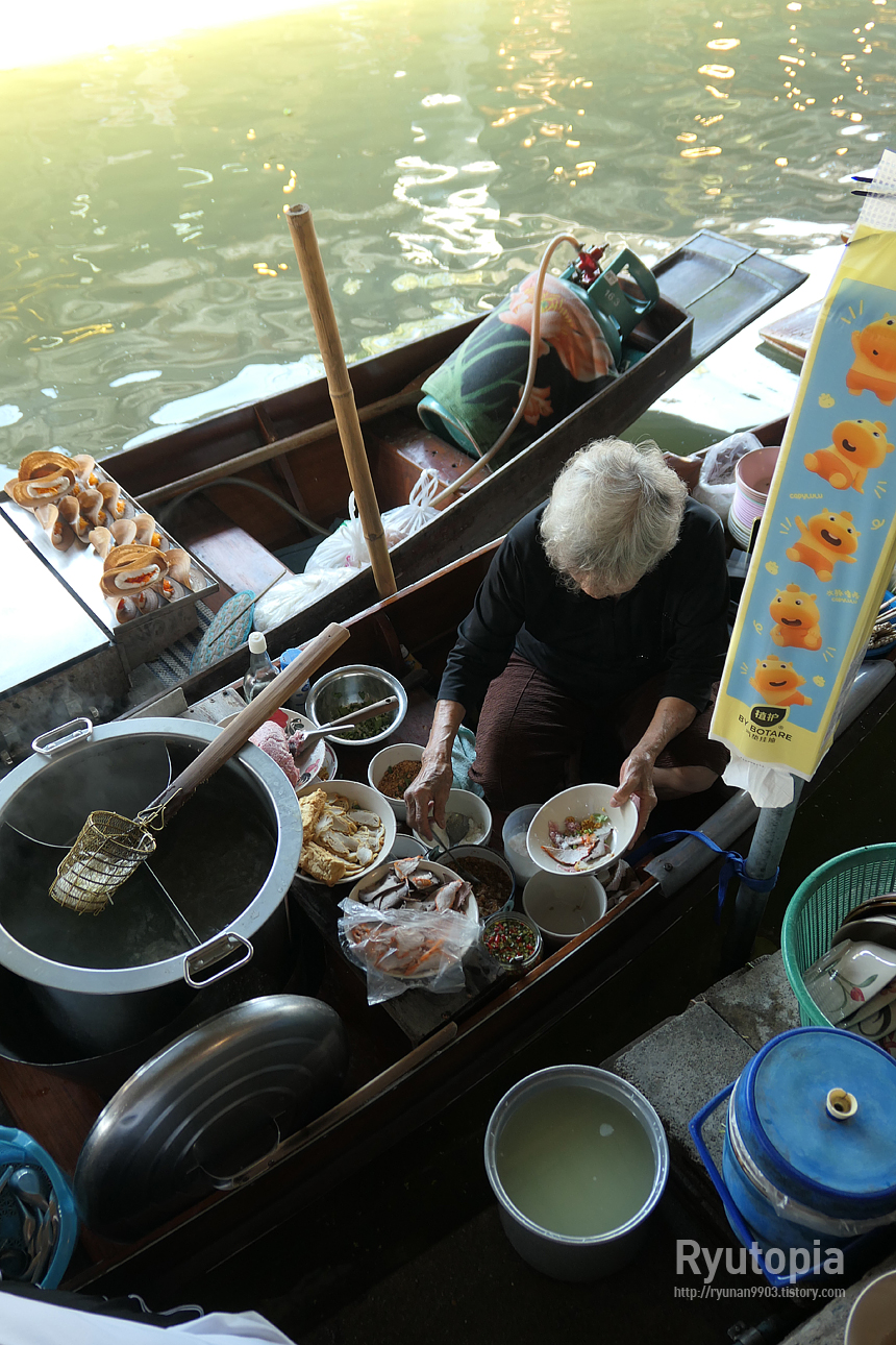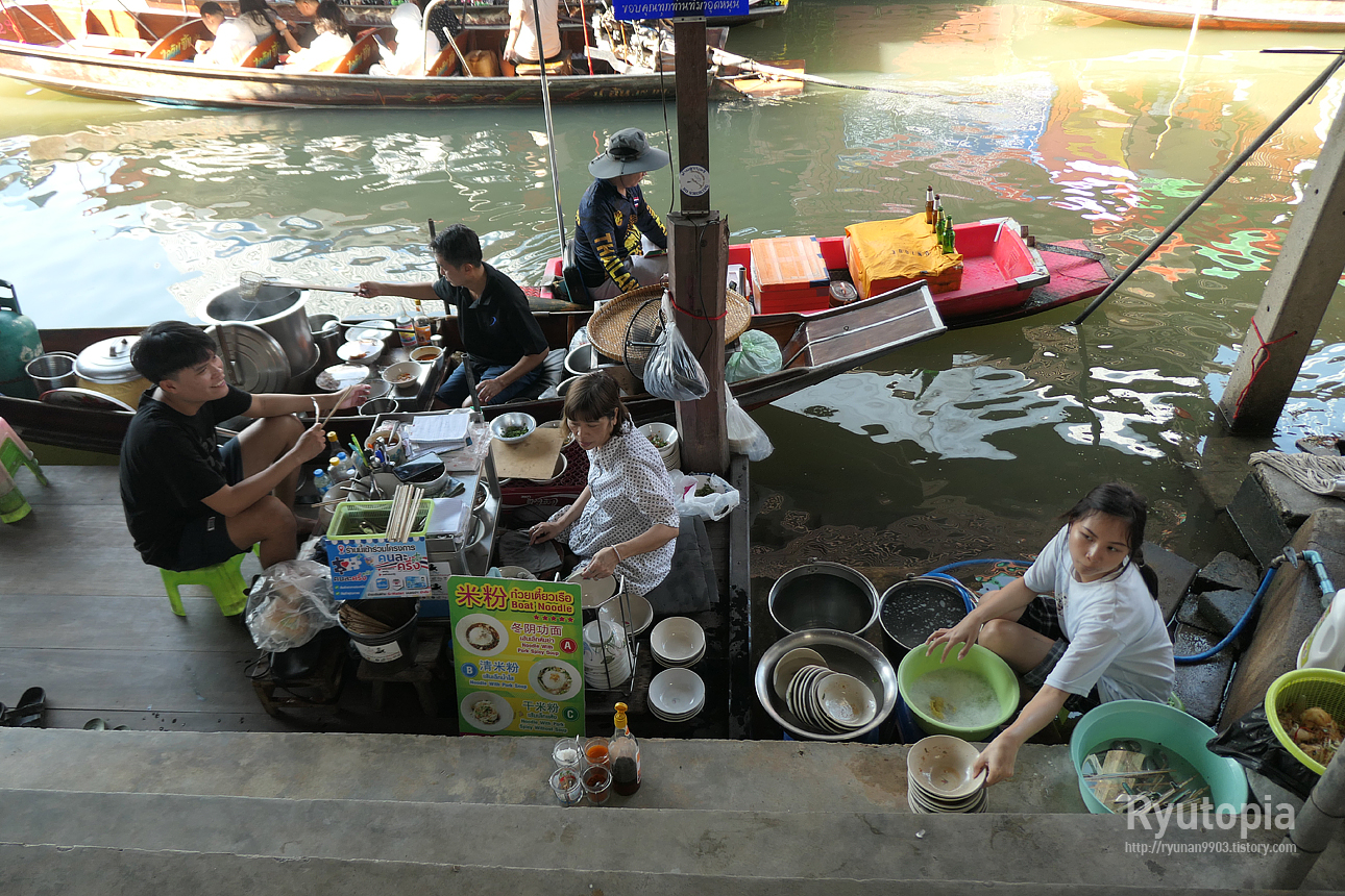 정확한 상호명은 잘 모르겠지만, 그냥 다들 '담넌싸두억 수상시장에 있는 배에서 파는 할머니 쌀국수' 집이라고 부른다.