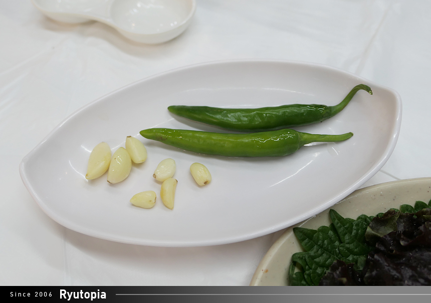 생마늘 깐 것과 함께 풋고추가 함께 나왔는데, 처음 기본으로 나오는 양은 적지만