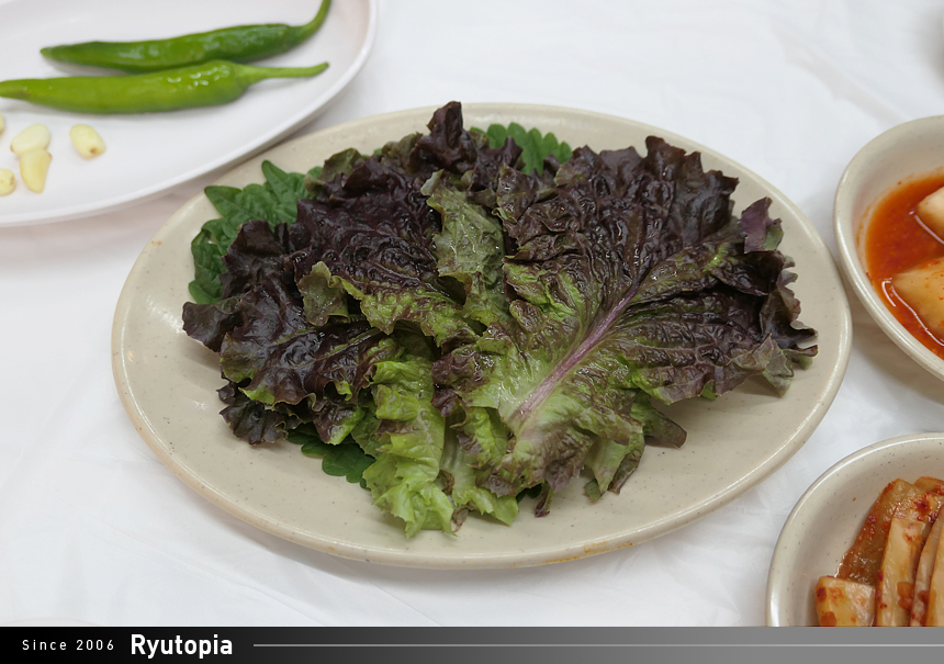 쌈채소로는 적상추와 깻잎, 두 가지가 제공.