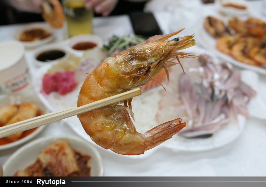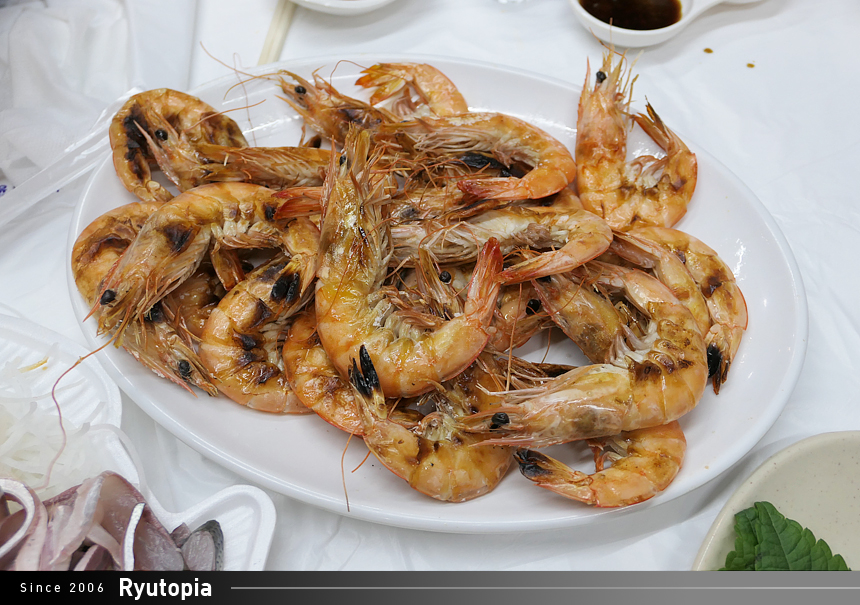한창 생선회 먹고 있던 도중, 대하 소금구이도 함께 나왔습니다.