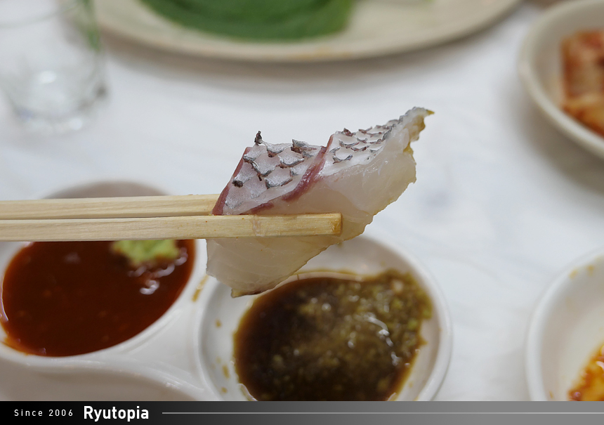 쫀득쫀득하고 고급스런 씹는 맛이 일품인 도미회.