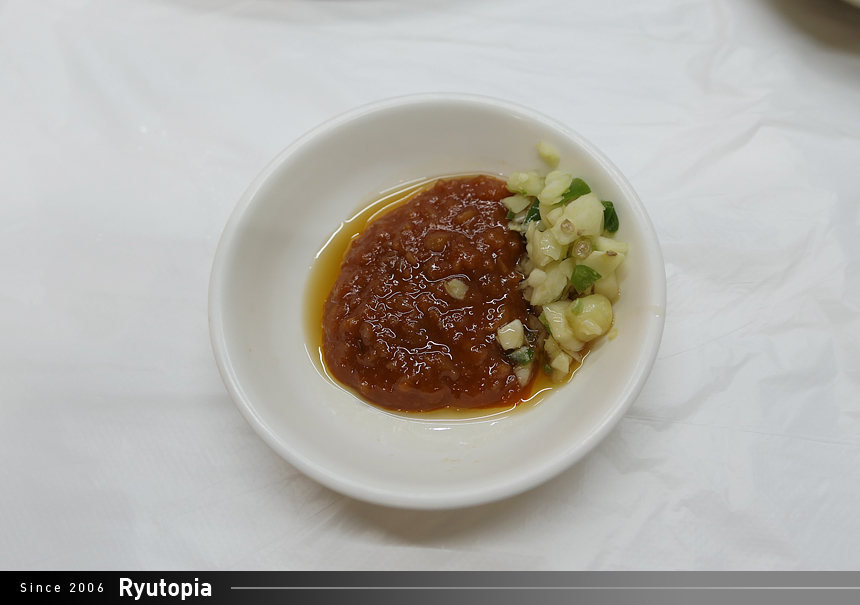 그리고 테이블에 기본 비치되어 있는 초장과 간장도 전용 종지에 살짝 담았습니다.