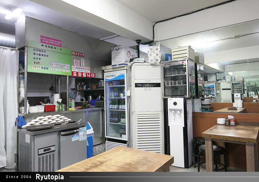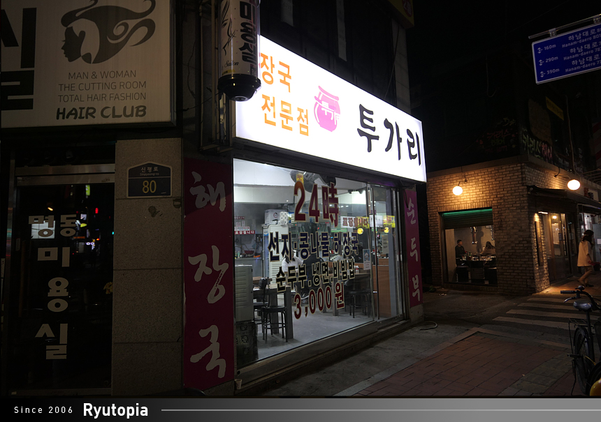 얼핏 보면 꼬치구이 포장마차 '투다리' 와 비슷해보이는 이 가게는 해장국을 전문으로 판매하는 24시간 영업 식당으로