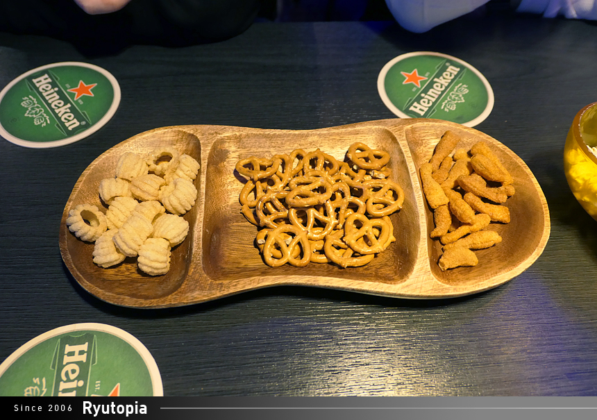 그리고 서비스 안주로 짱구스낵과 프레첼, 닭다리 스낵까지 함께 나왔습니다.