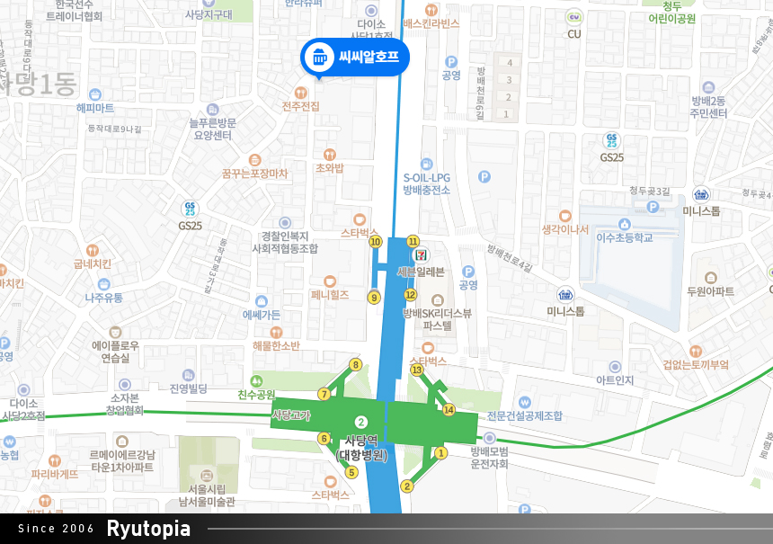 ※ 씨씨알호프 찾아가는 길 : 지하철 2, 4호선 사당역 10번 출구 하차, 전주전집 바로 옆 건물에 위치(2층)