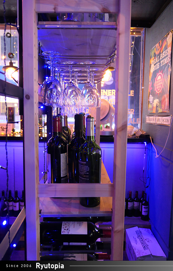 매장 한 쪽에 비치되어 있는 와인병과 와인잔.