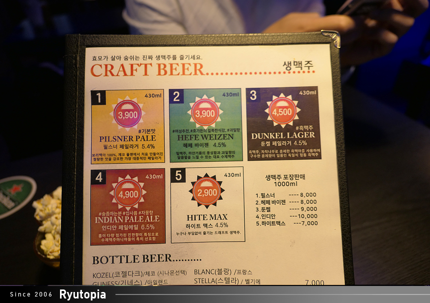 가볍게 한 잔 즐기는 곳이니만큼 크래프트 맥주 가격도 꽤 합리적인데요,