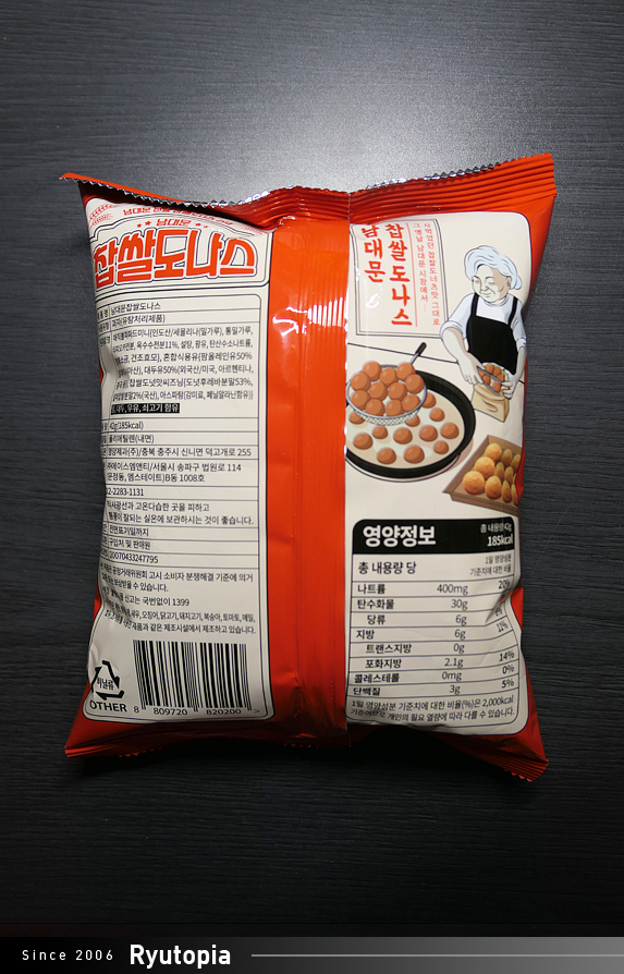 그 시절 추억의 맛 그대로, 찹쌀도너츠 맛이 가득한 남대문의 전통 찹쌀도너츠를 스낵화한 상품이라고 하는데요,