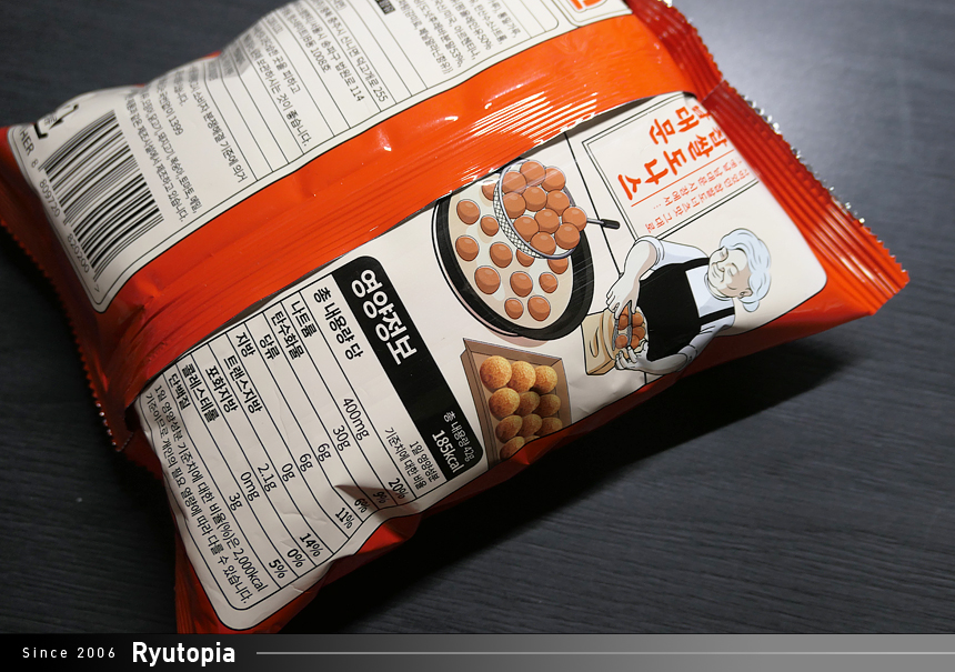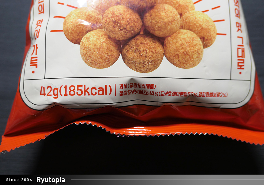 중량은 42g. 비슷한 부피의 다른 스낵류에 비해 중량이 꽤 가벼운 편입니다.