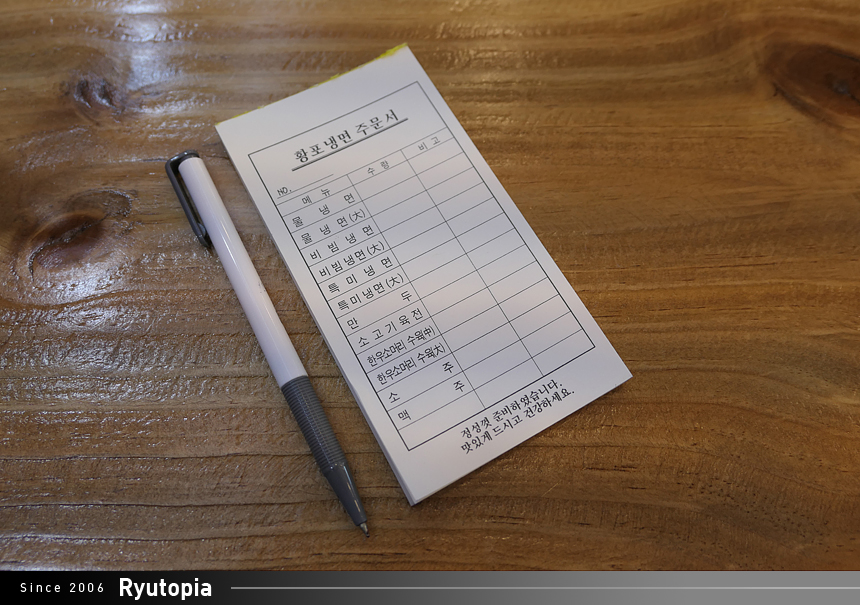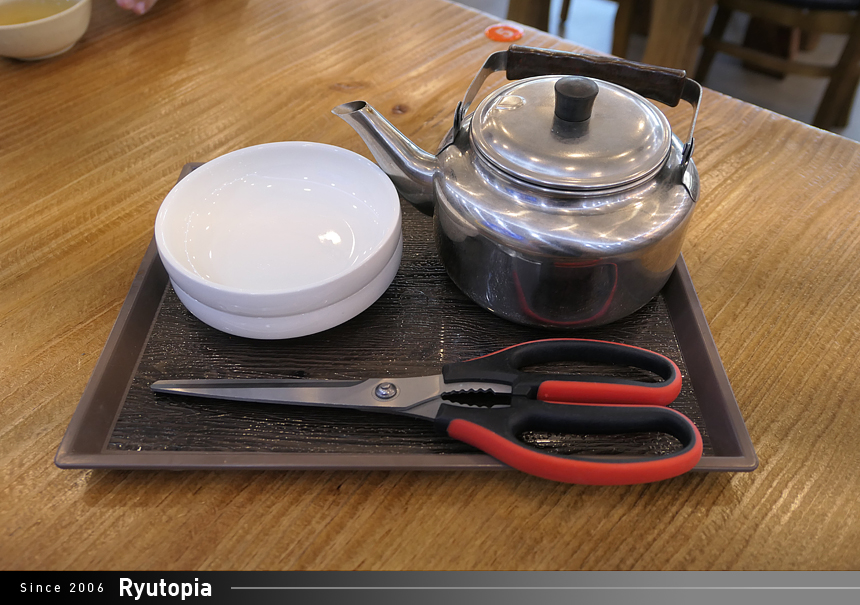 테이블에 겨자와 식초가 비치되어 있긴 하지만, 더 첨가하지 않고 온전한 육수맛을 즐기기로 합니다.