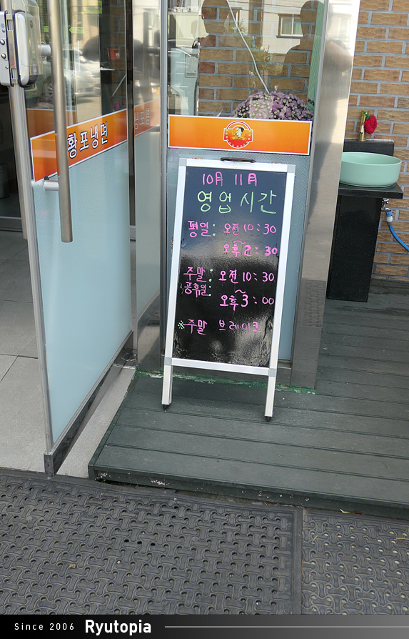 황포냉면의 냉면은 메밀전분과 고구마전분을 섞어 낸 쫄깃한 면을 사용한다고 하는군요.