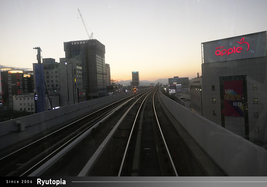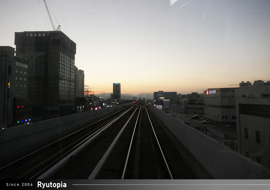 여기서 경전철을 타고 세 정거장만 이동하면 됩니다.