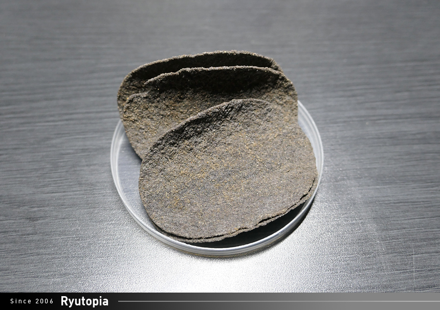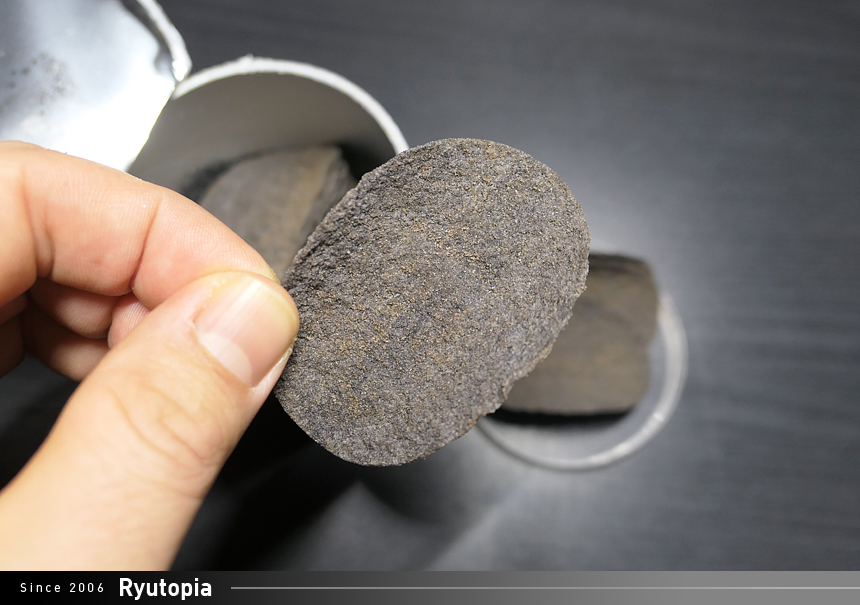 특이한 점이 있다면 과자색이 밝은 노란빛이 아닌 새카만 석탄색을 띠고 있다는 것...;;