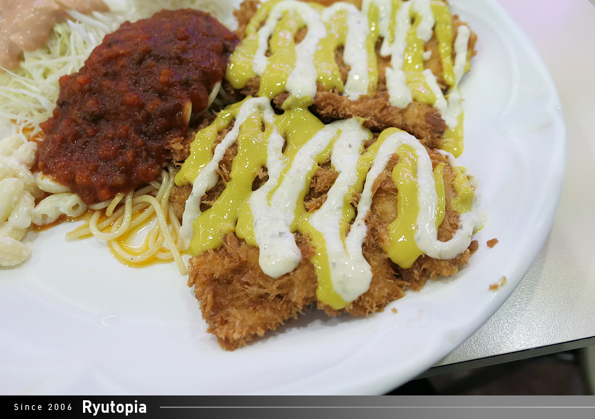 치킨까스에는 돈까스와 달리 머스타드 소스, 그리고 타르타르 소스를 뿌려 내어주더군요.