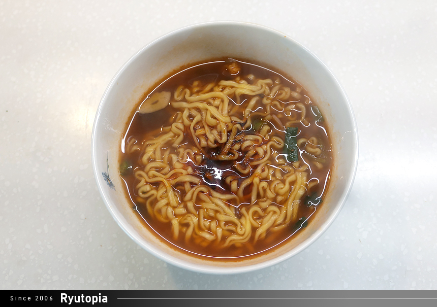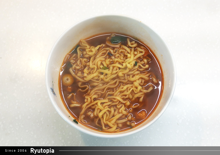 건면을 사용한 제품이라 다른 라면에 비해 면의 식감이 좀 더 꼬들꼬들한 것이 특징.