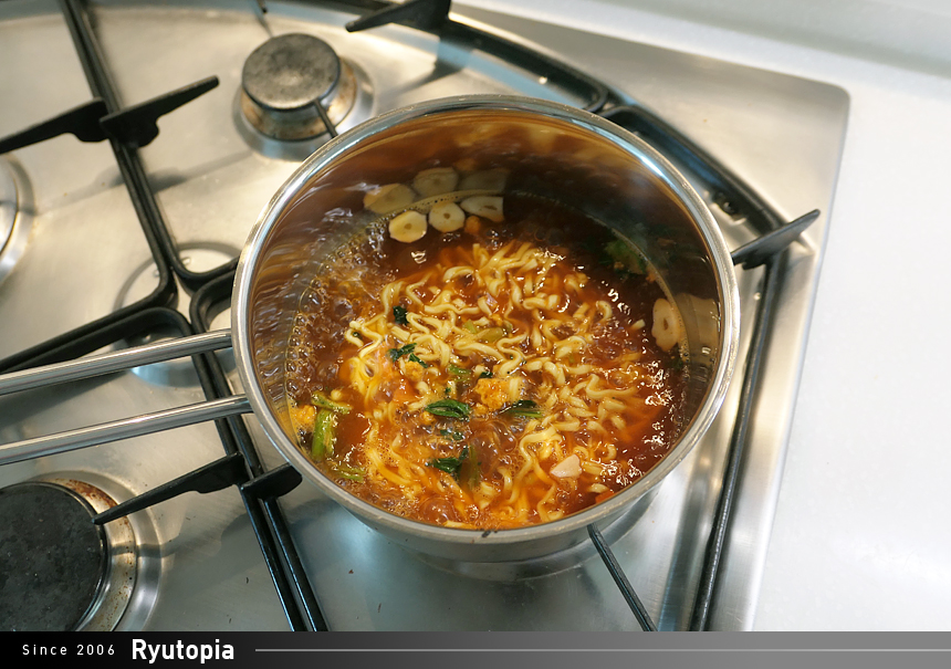 다 끓은 면은 그릇에 옮겨담은 뒤(물론 혼자 편하게 먹으려면 냄비째 먹어도 무관)