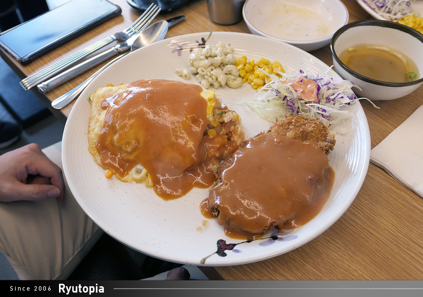 오무라이스와 돈까스를 동시에 먹고 싶을 때 추천하는 요리입니다.