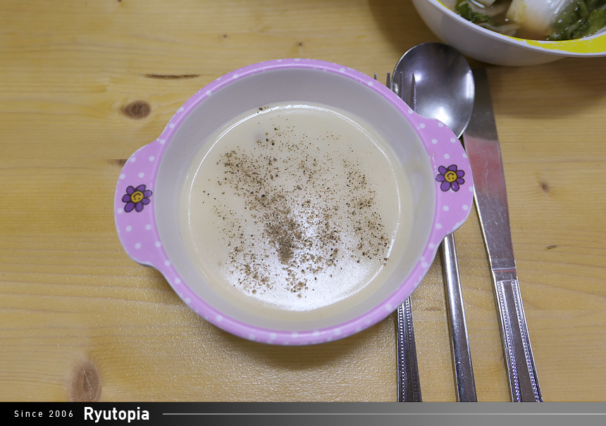 메인 식사가 나오기 전 제공되는 수프는 후추 살짝 뿌려서 가볍게 먹습니다.