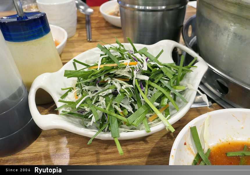 닭한마리와 같이 먹는 찬으로 부추, 양배추, 당근을 채썬 모듬 야채가 나오는데