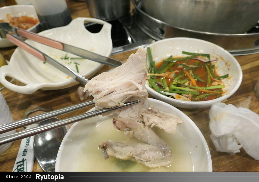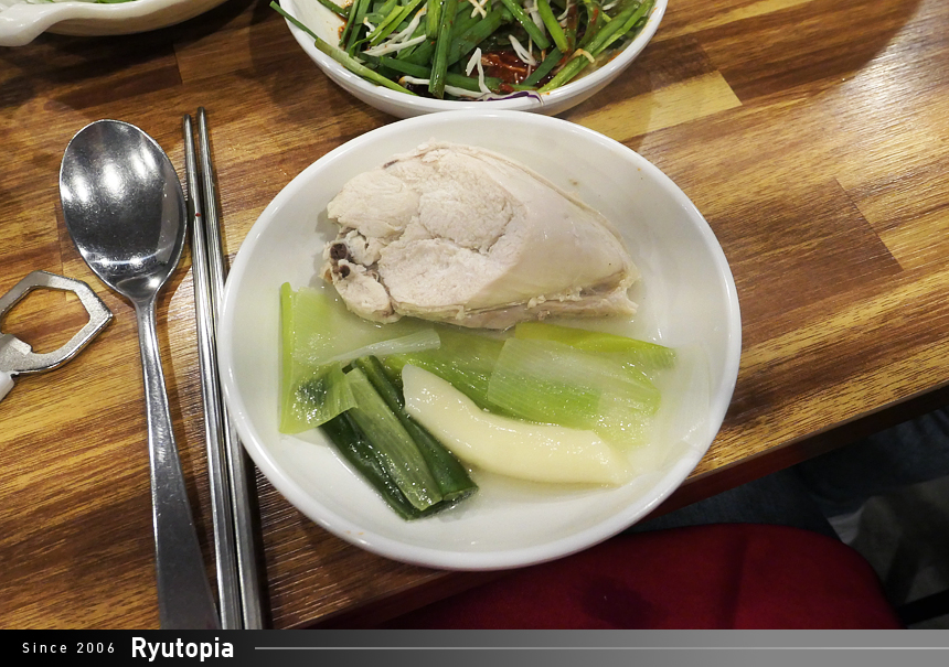 이렇게 국물과 함께 즐기는 닭도 자극적이지 않고 본연의 맛을 즐길 수 있어 되게 좋아하는 편.