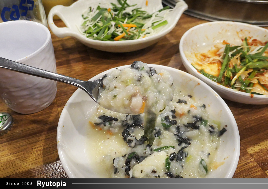 한때 유행했던 버섯 샤브샤브의 샤브샤브 + 칼국수 + 죽 순서대로 먹는 것와 동일하게 마지막 마무리로 주문했습니다.