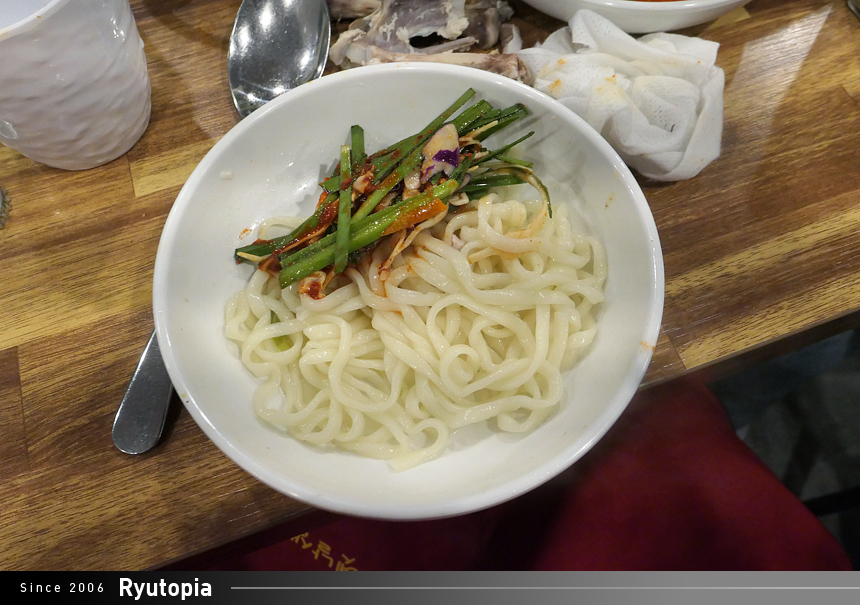 닭고기를 어느 정도 건져먹은 후 칼국수 사리를 추가했습니다.
