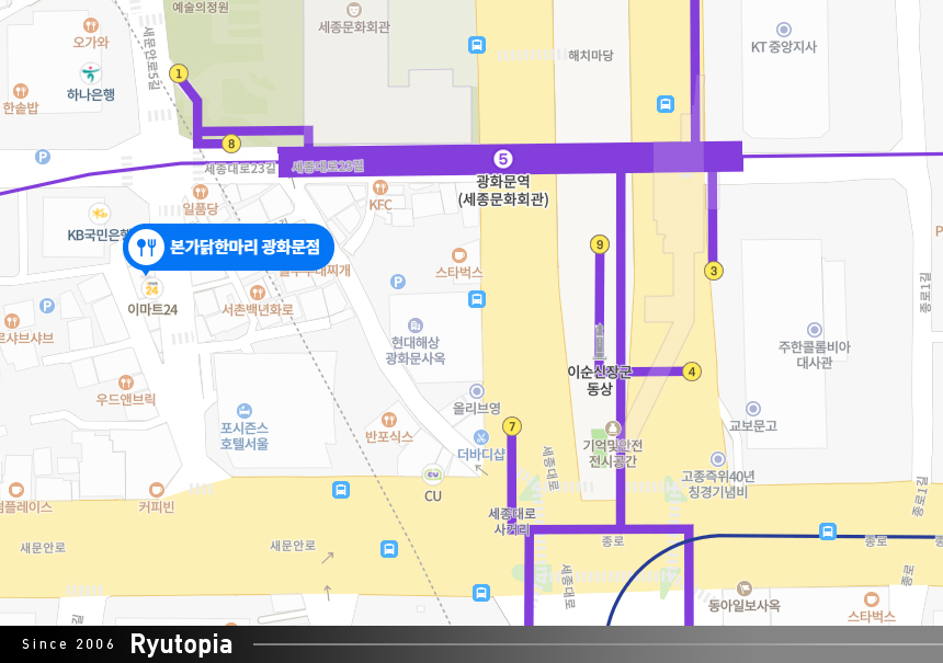※ 본가 닭한마리 찾아가는 길 : 지하철 5호선 광화문역 7번출구 하차, 포시즌스 호텔 왼편 골목 안으로 쭉 직진, 이마트편의점 2층
