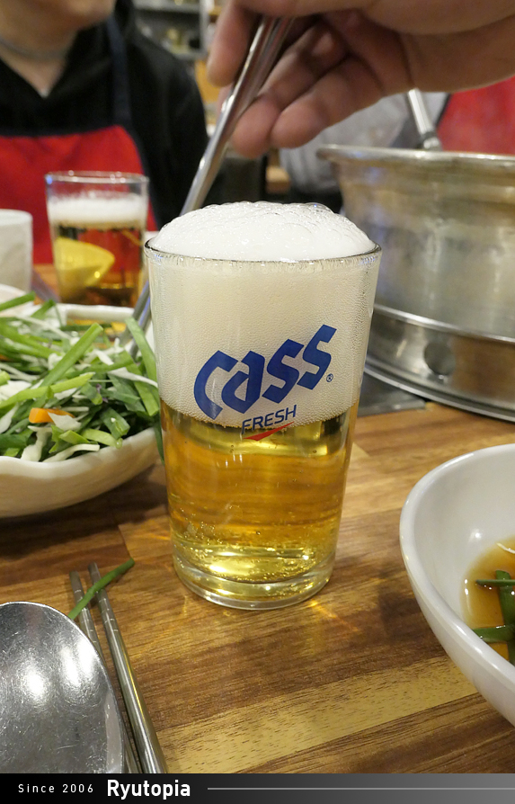 일단 맥주 한 잔 따라놓고 메인 음식인 닭한마리가 나오기를 기다리는 중.