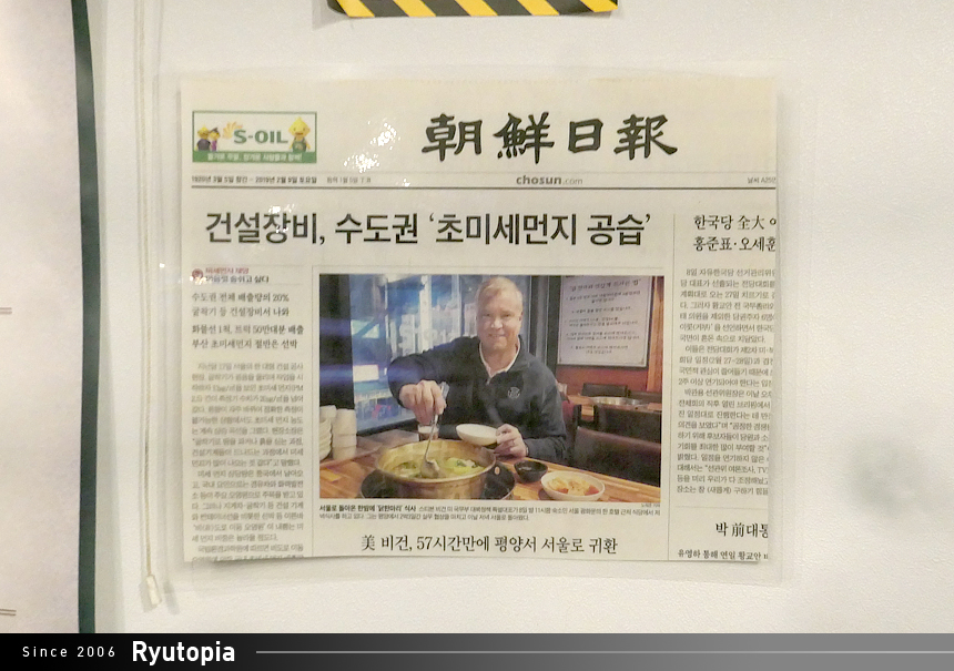 매장 입구에 신문 한 장이 붙어있는데요, 신문 사진에 나온 사람의 정체는