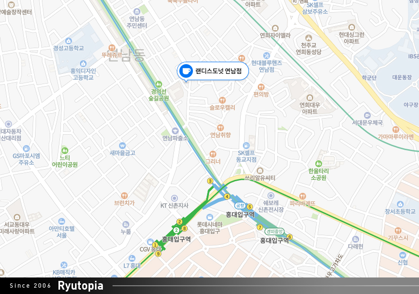 ※ 랜디스 도넛 연남점 찾아가는 길 : 지하철 2,경의중앙,공항철도 홍대입구역 3번출구 하차, 경의선 숲길공원 근방 위치